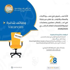 فرص عمل متاحة في مدارس الكلية العلمية الإسلامية