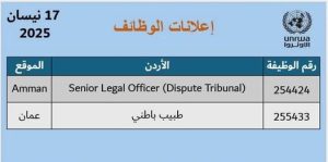 تعلن وكالة الأونروا عن وظائف شاغرة