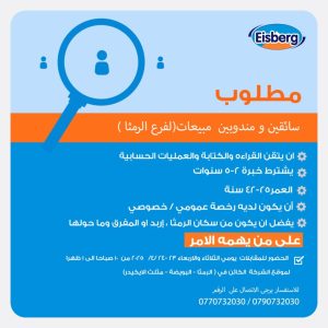 شركة ومصنع ايسبرج تفتح باب التوظيف في الأردن… لعدد مميز من الوظائف