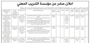 وظائف حكومية في الأردن.. تعلن مؤسسة التدريب المهني عن حاجتها للوظائف الشاغرة