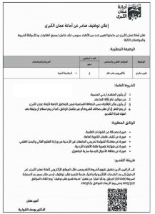 الشروط والمواصفات : لا تُشترط الخبرة