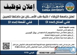 • إعلان توظيف رسمي لدى جامعة الزرقاء …قدم الآن