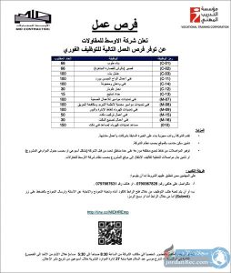 وظائف شاغره صادره عن مؤسسة التدريب المهني….قدم الآن وظائف القطاع الخاص في الأردن في يوليو 9, 2025 وظائف شاغره صادره عن مؤسسة التدريب المهني....قدم الآن شارك تُعلن وحدة تشغيل الخريجين بمؤسسة التدريب المهني وبالاشتراك مع شركة الأوسط للمقاولات عن توافر الفرص الآتية: 📌📌من خريجي معاهد مؤسسة التدريب المهني 📌وذلك ضمن الشروط المطلوبة: • السن بين 18 -45 سنة. • شهادة عدم سوابق . • خبرة سابقة بالمجال/أشغال مماثلة.